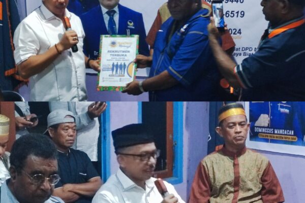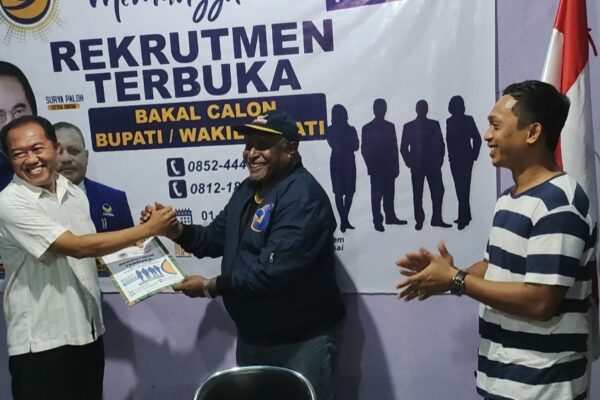 Bintuni,sorotpapua.net – Bakal Calon Wakil Bupati (Bacawabup) Dr Alimudin Baedu sekitar pukul 21.00 Wit diantar simpatisannya mengembalikan formulir pendaftaran kepada tim penjaringan bakal calon bupati (Bacabup) dan bakal calon wakil bupati (Bacawabup) di Sekretariat DPD Partai NasDem kabupaten Teluk Bintuni di Tisai distrik Bintuni Timur. Saat menyerahkan formulir pendaftaran Alimudin Baedu didampingi para tokoh…