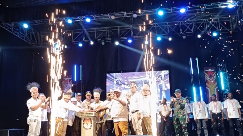 “Kami menyampaikan terima kasih dan apresiasi atas kerja keras KPU dan Bawaslu yang telah menyelesaikan tahapan Pemilu.Dan sekarang mulai melaksanakan tahapan Pemilukada Bupati dan Wakil Bupati tahun 2024” ujar Plt Sekda Teluk Bintuni,Frans Awak saat peluncuran pilkada di Gelangang Argosigemerai,Sabtu(27/7/2024)