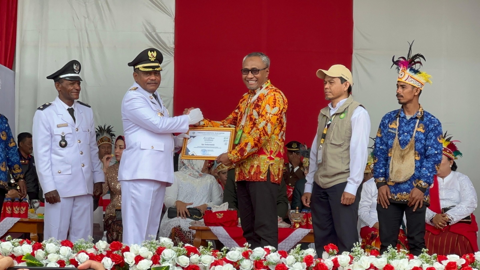 Sertifikat penghargaan tersebut diberikan oleh Bupati Petrus sebagai bagian dari rangkaian upacara hari Kemerdekaan RI ke-79 di Kabupaten Teluk Bintuni yang di gelar pada tanggal 17 Agustus 2024 di lapangan Argosigemerai, Bintuni.