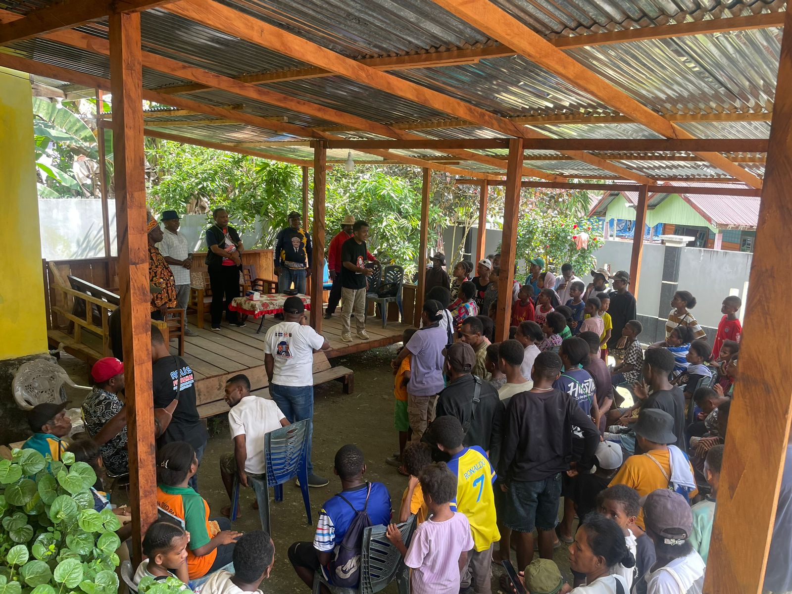 Selain mengunjungi posko,Petrus Kasihiw juga meresmikan satu posko kemenangan di Kampung Bagaraga Distrik Wayer