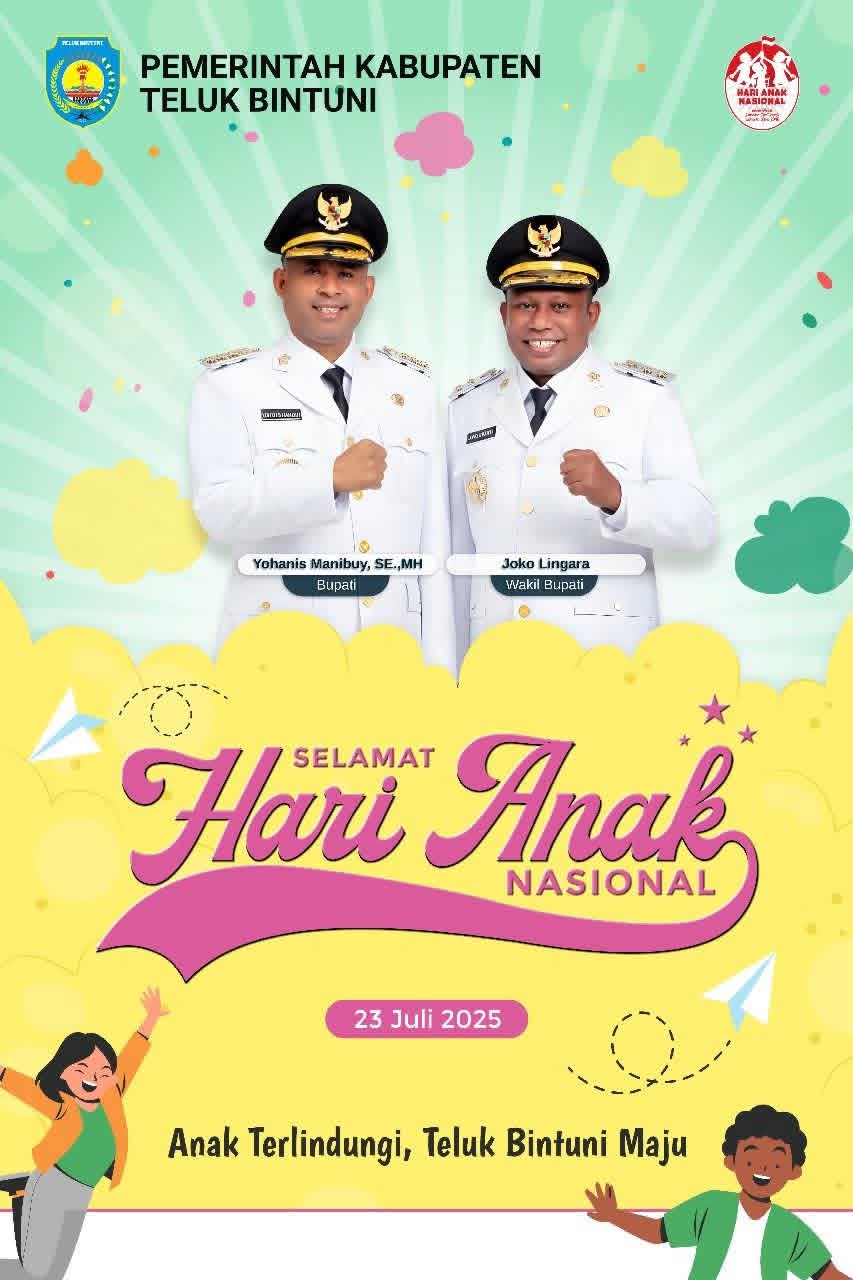 Seni BudayaPemda Teluk Bintuni Mengucapkan Selamat Hari Anak Nasional Redaksi Sorot PapuaJuli 5, 2025Desember 5, 202501 mins Navigasi posPrevious: Reskrim Teluk Bintuni Tidak Temukan Adanya Pendistribusian BBM Ilegal di Pelabuhan BintuniNext: Pemda Kabupaten Teluk Bintuni Mengucapkan Selamat Hari BhayangkaraTinggalkan Balasan Batalkan balasanAlamat email Anda tidak akan dipublikasikan. Ruas yang wajib ditandai *Komentar *Nama * Email * Situs Web Simpan nama, email, dan situs web saya pada peramban ini untuk komentar saya berikutnya. ΔSitus ini menggunakan Akismet untuk mengurangi spam. Pelajari bagaimana data komentar Anda diproses