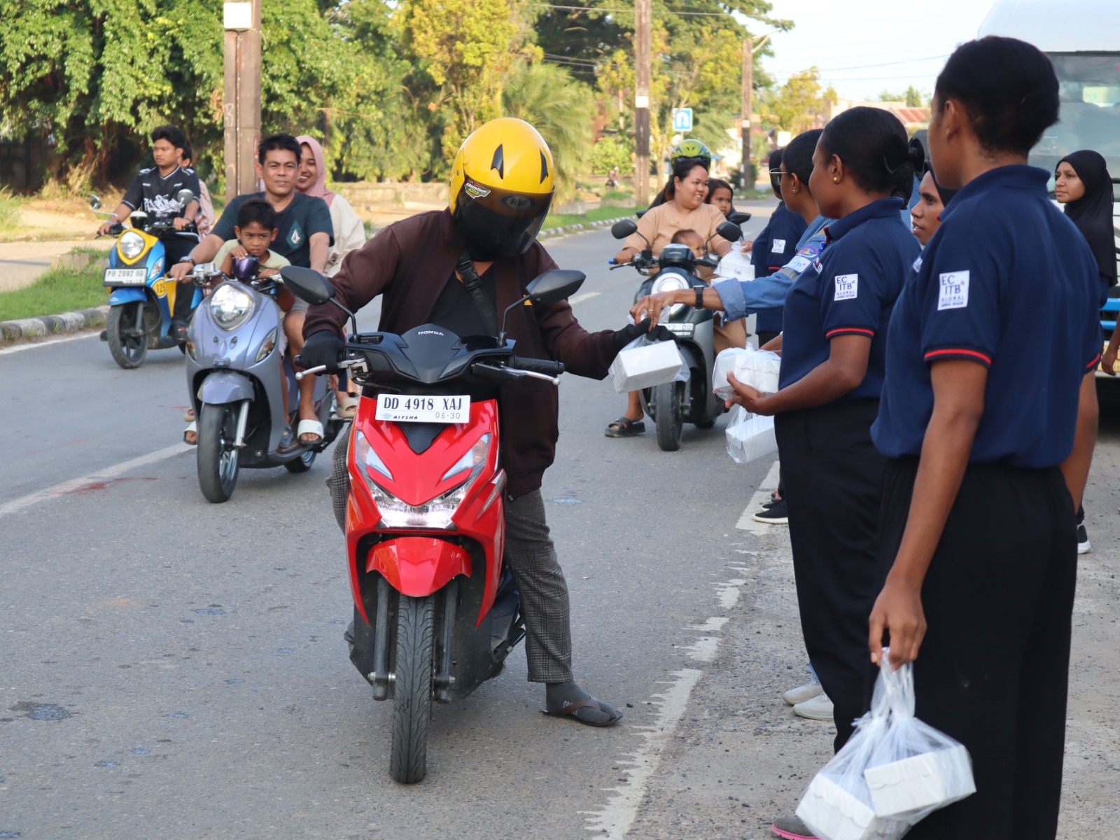 Para siswa terlihat antusias dan bersemangat saat membagikan takjil kepada warga. Senyum dan sapaan hangat mereka menyambut setiap pengendara yang menerima paket berbuka puasa.